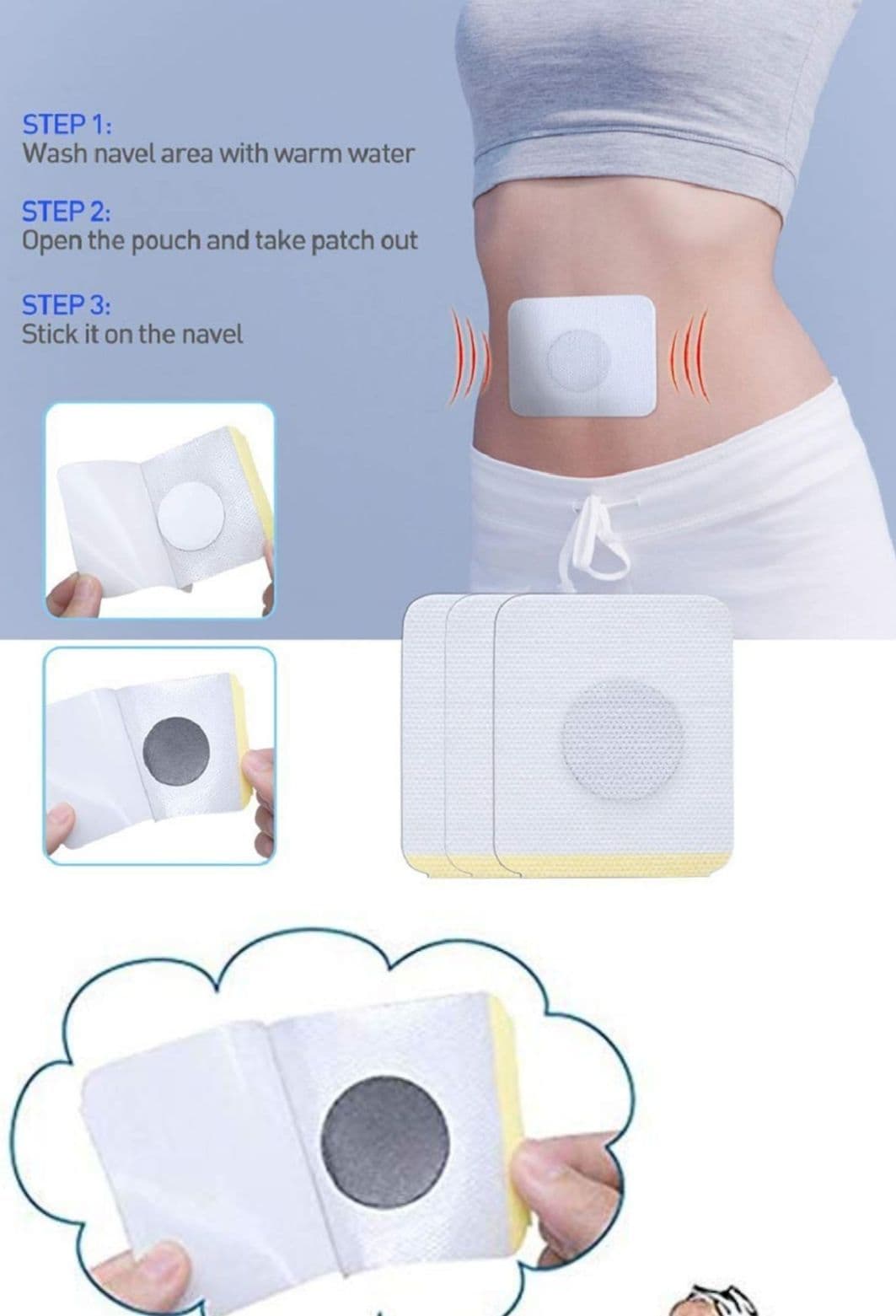 3. One patch can be used for 3-4 days, then remove it and clean your navel area with warm water.