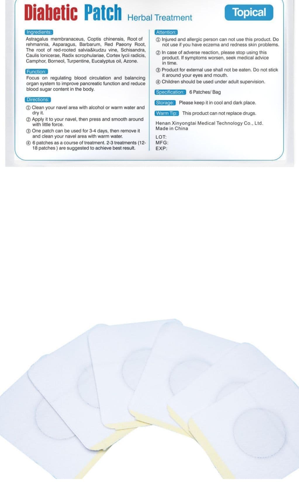 Diabetic patch Herbal Treatment Patch 30 * 5 Bags